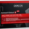- Apply Vichy Dercos Aminexil Clinical 5 Anti-Hair Fall Treatment section by section, massaging the scalp with the applicator using a zig-zag motion until you have treated all the scalp.