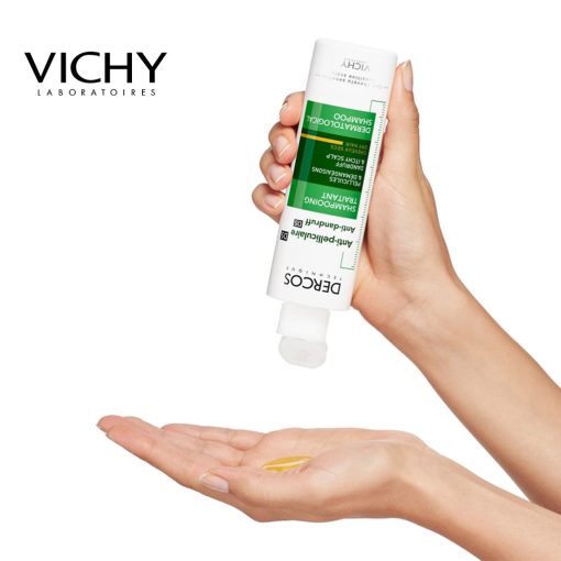 Vichy Dercos Anti Dandruff Shampoo for Dry hair is suitable for daily use. This lightweight shampoo works to eliminate visible dandruff, providing anti-dandruff protection. Enriched with Selenium DS, the shampoo has an anti-fungal effect, helping to reduce redness and irritation on the scalp by combatting the growth of infection. Selenium DS that prevents and treats dandruff crisis on dry scalps. Salicylic acid helps rid your scalp off dry skin and dandruff, which means reduced itchiness and irritation. Also infused with Ceramides, the formula helps to rebuild and strengthen the skin’s natural barriers, working to repair and protect the scalp while locking in moisture. This helps to combat itchiness and irritation, as well as offering antioxidant protection to shield the scalp from harmful environmental aggressors. Finally, Methanol leaves the hair purified and detoxified from root to tip, combatting excess oiliness and sebum production. You’ll be able to enjoy long-lasting comfort throughout the day from wash to wash. The scalp cell’s bond is strengthened in order to avoid desquamation and Selenium removes all dandruff. Results are seen from the first day and crisis are prevented for up to six weeks – itchiness and dandruff are drastically reduced.