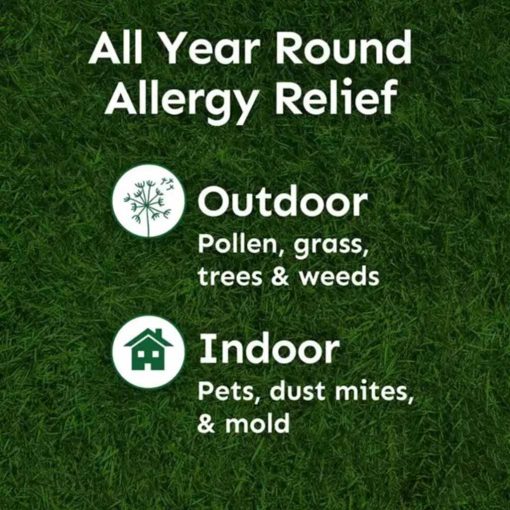 Zyrtec is an antihistamine contains 10mg Cetirizine HCl antihistamine to relieve worst allergy symptoms, indoors and out, for a full 24 hours. Zyrtec tablets help relieve seasonal allergy and other upper respiratory allergy symptoms, including itchy eyes, sneezing, runny nose, itchy nose or throat, and more. This allergy relief medicine helps to treat symptoms of pollen allergies & other outdoor seasonal allergies, as well as indoor allergies, such as dust allergies, pet allergies, and more. From the #1 allergist recommended brand among OTC oral antihistamines, this prescription-strength allergy medicine starts working hard at hour 1 and works twice as hard when you take it again the next day.